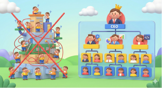 >如此扁平的组织架构带来的好处是什么呢?简而言之就是更低的信息传递损耗和更高的工作效率。